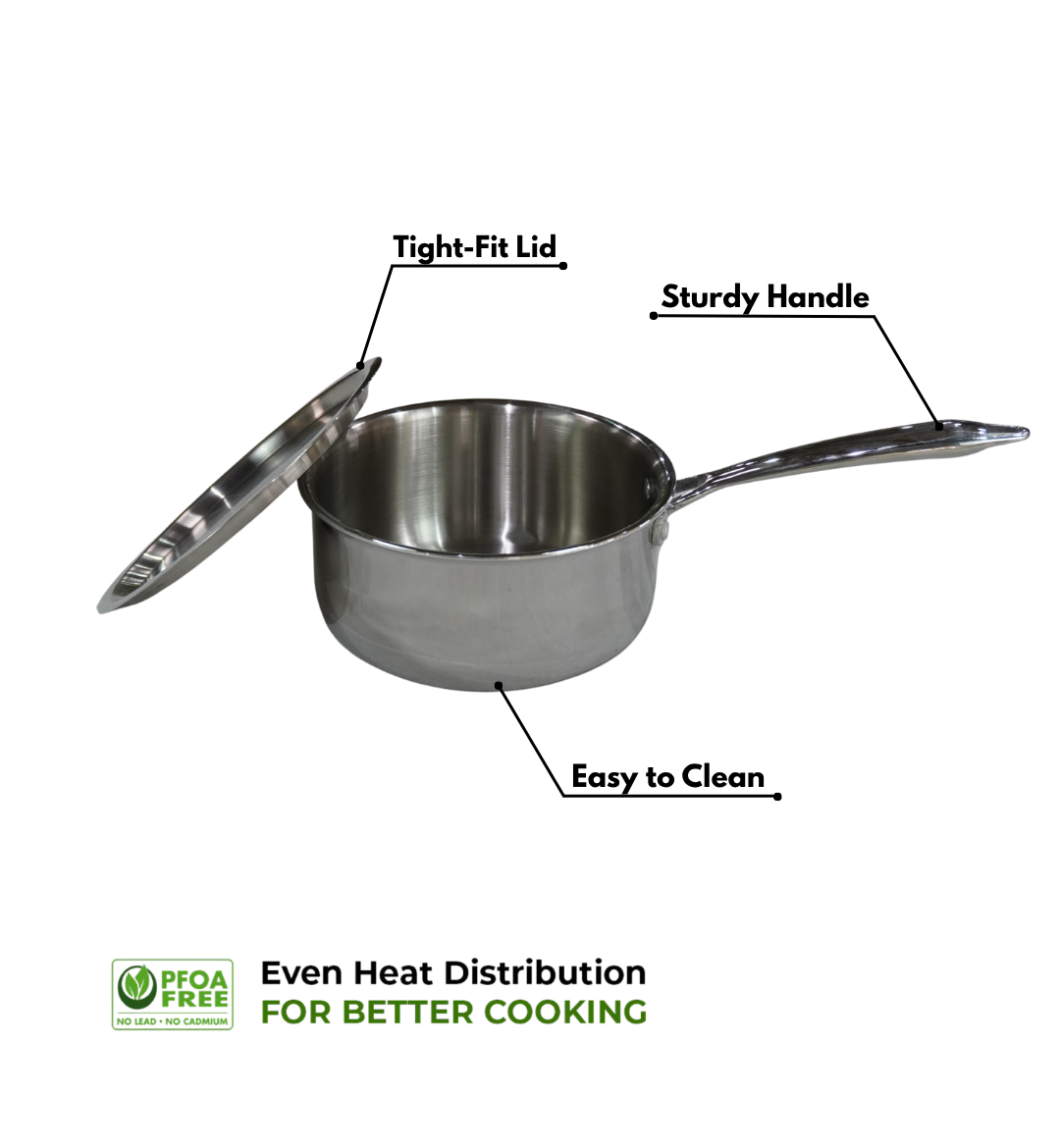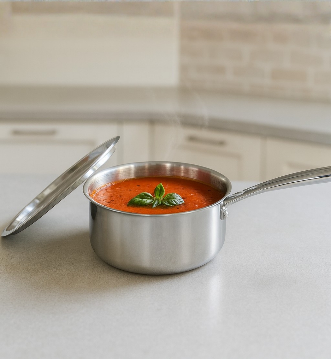 Stainless Steel Saucepan with Lid — Crafted from premium food-grade stainless steel, this sleek and durable saucepan ensures even heat distribution for perfect cooking every time. Its long, ergonomic handle provides a secure grip, while the tight-fitting lid locks in flavor and nutrients. Ideal for making soups, sauces, and gravies, it’s designed for both modern kitchens and everyday use. Easy to clean, rust-resistant, and compatible with gas and induction stoves.}